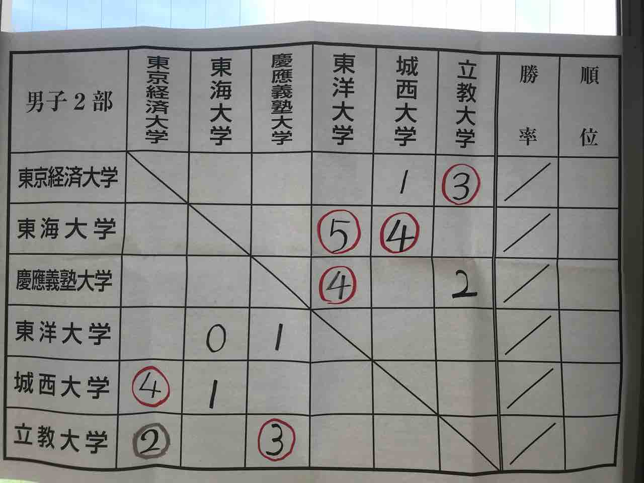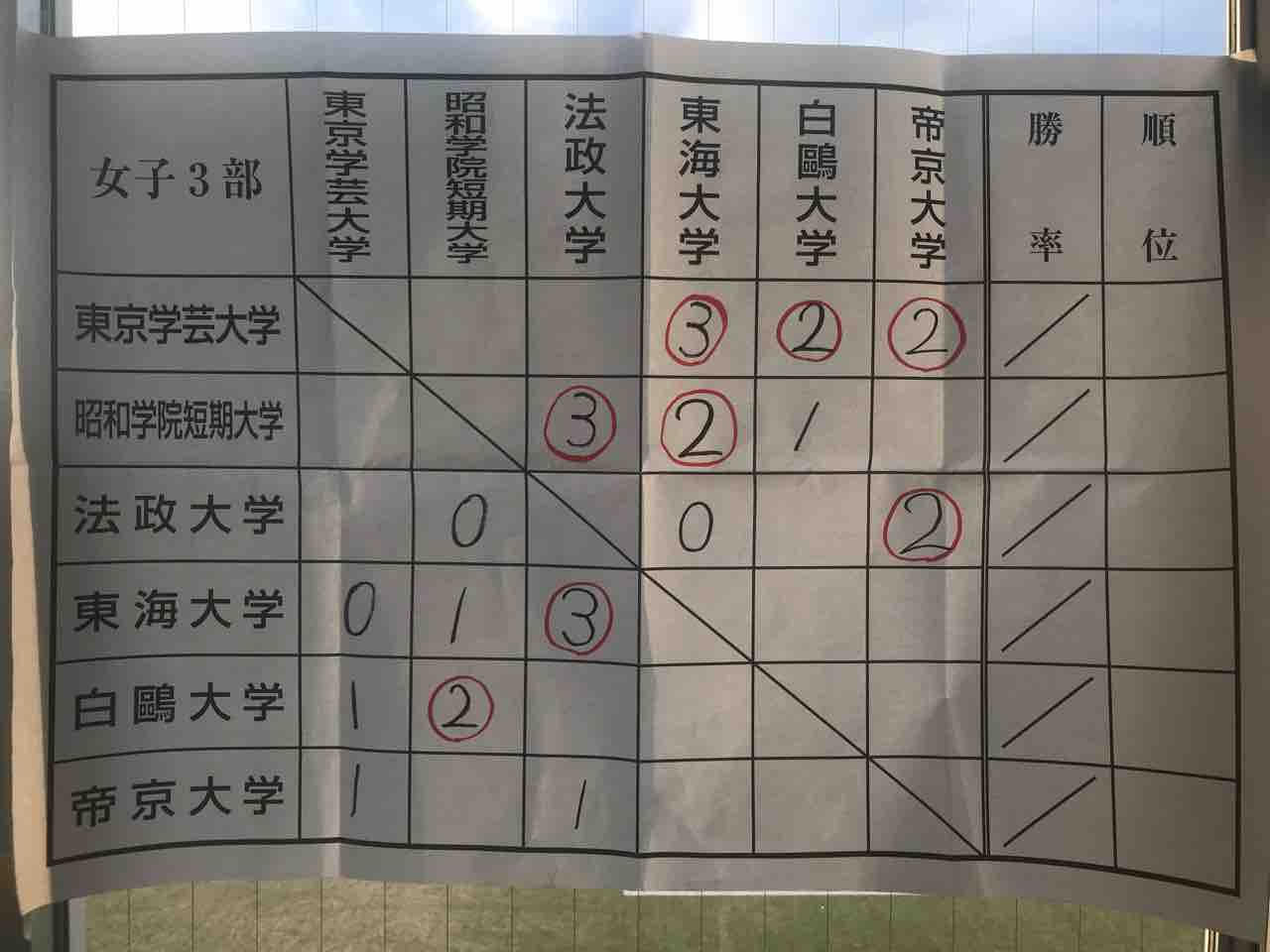 明治大学・東京女子体育大学が2勝1敗と追っています!!