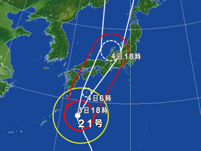 非常に強い台風21号は、明日、四国から紀伊半島に上陸しそうです。