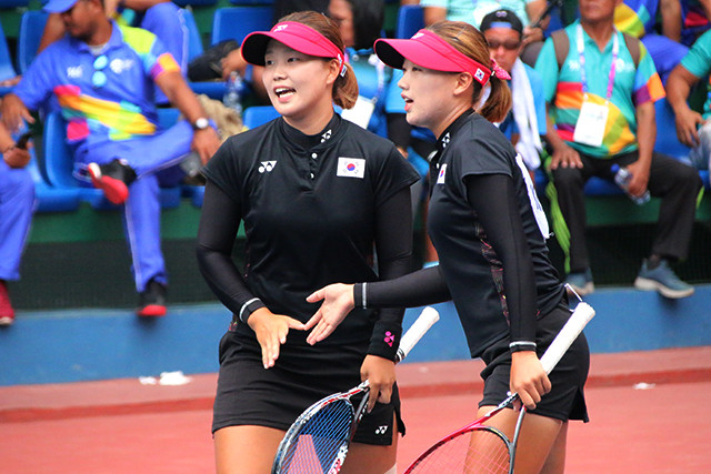 ソフトテニス・オンライン 「ぉまみ」です! 昨日 インドネシアから無事帰国しました! アジア大会 国別対抗2日目 @インドネシア・パレンバン 男女とも 頂上決戦は日本VS韓国に!! 日本女子は 1番 高橋・半谷ペアが ムン ヘギョン・ベク ソルにファイナル10-8で競り勝ち先勝!