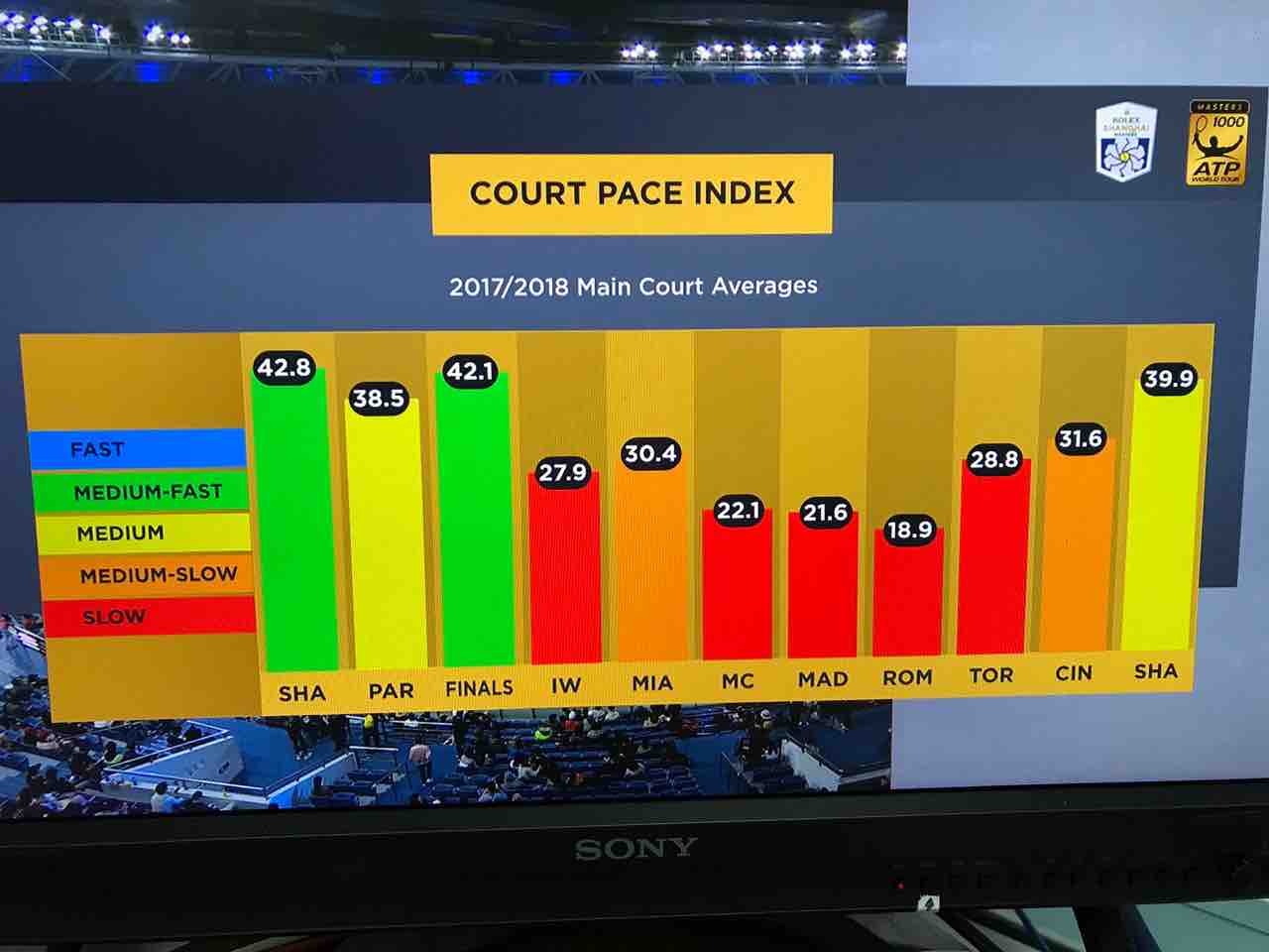 マスターズはどの大会も速いサーフェスはなくなってます。上海は速く見えましたが、それでも今年はミディアムでした。
