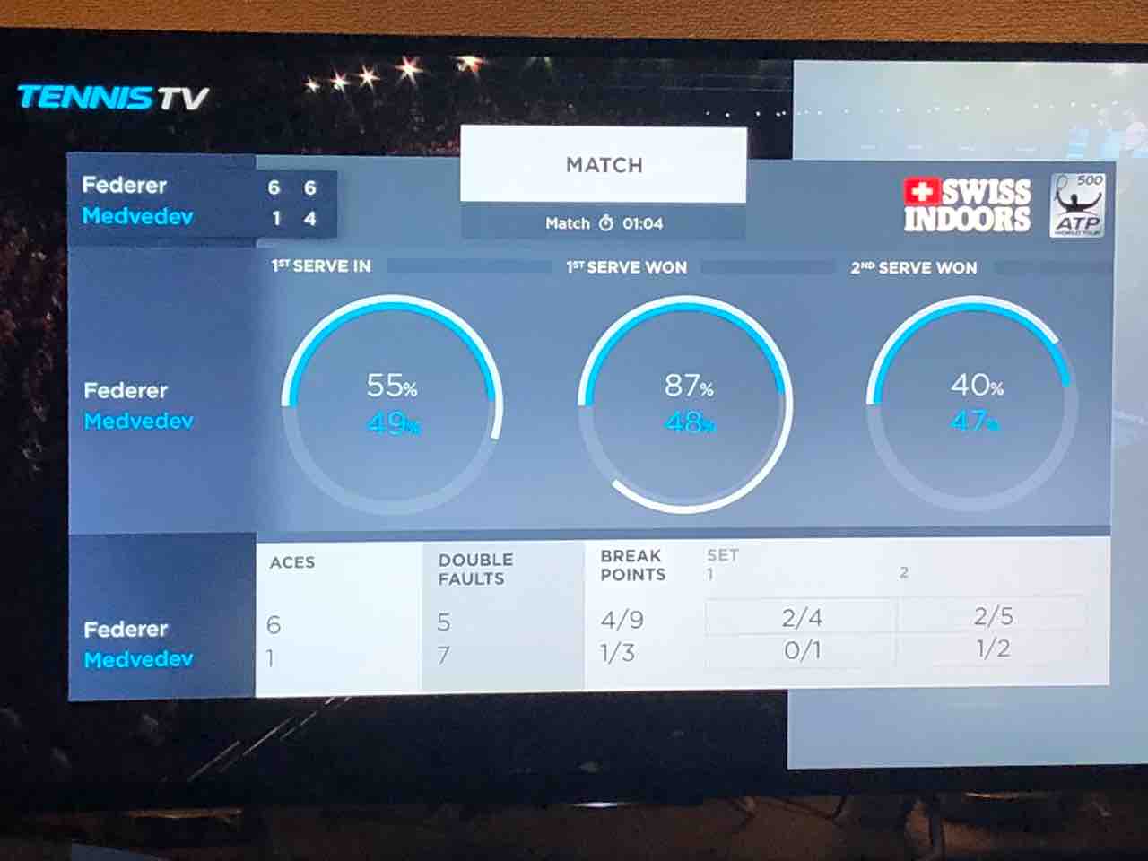 ただ、試合全体としては、メドベージェフは疲労感ありありで、上海や楽天とは程遠い出来でした。前日のチチパス戦の影響ありました。