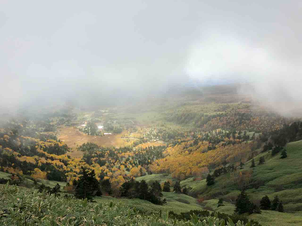 たまに切れ間から、芳ヶ平湿原が見れました。