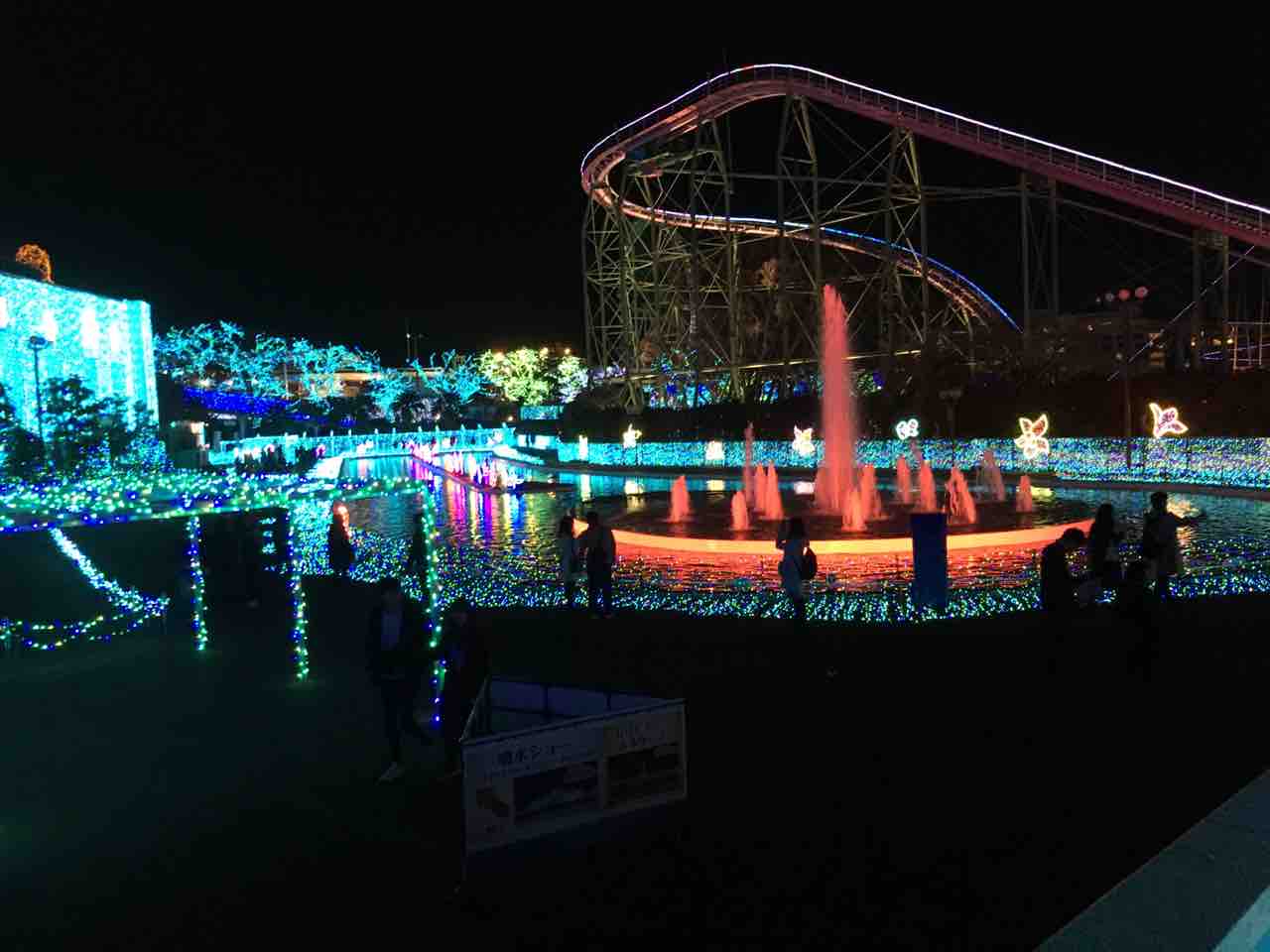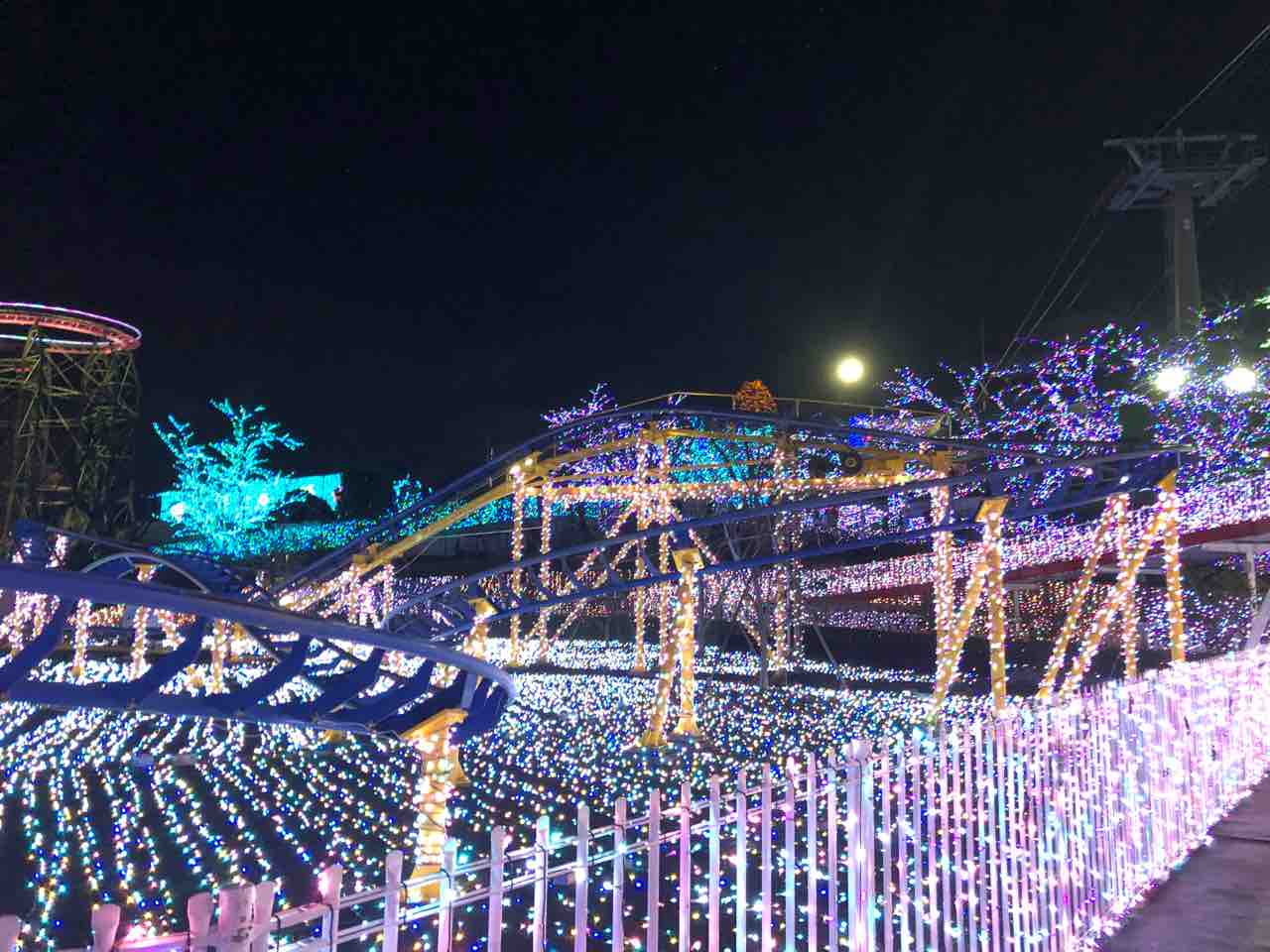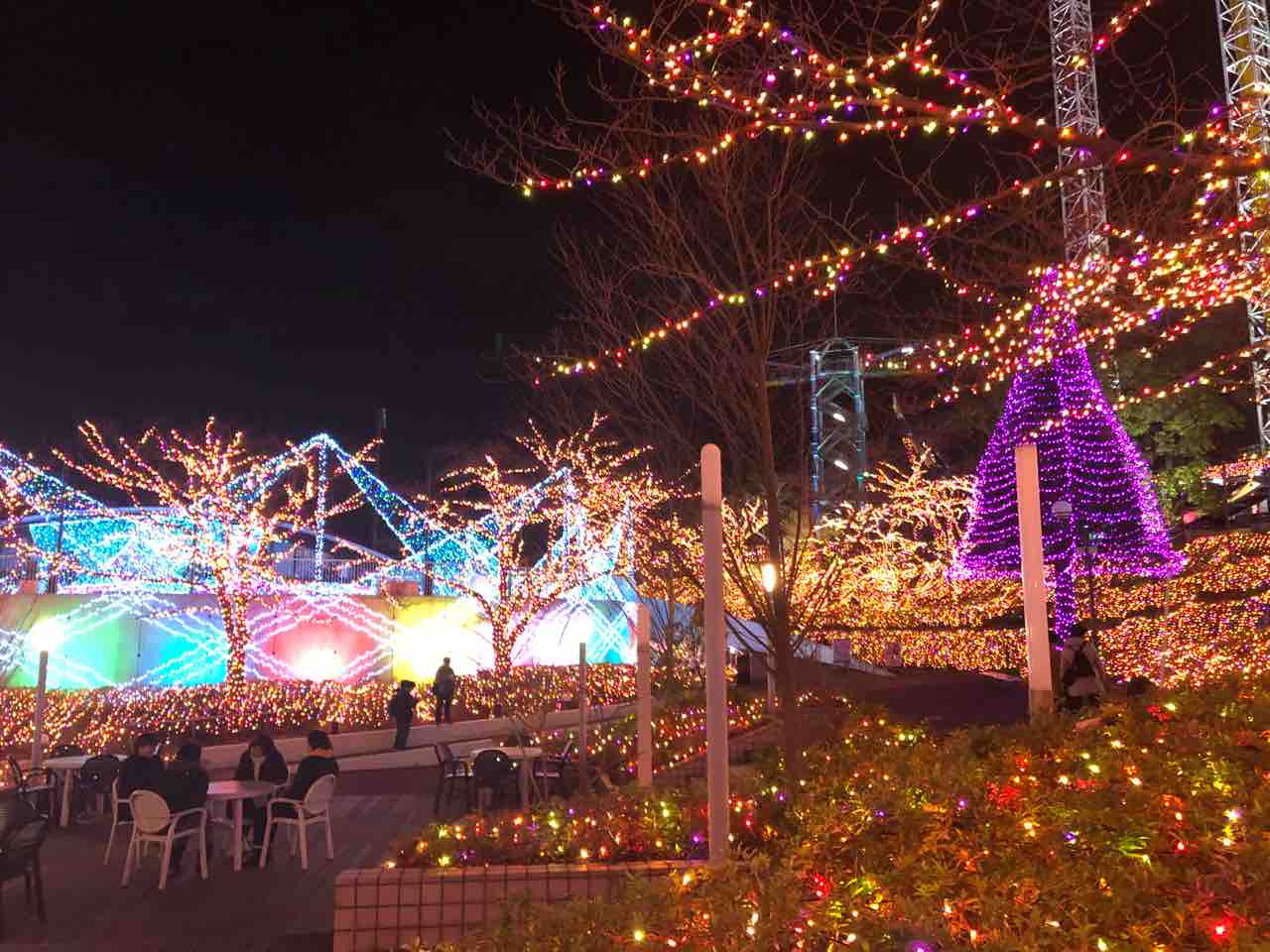 夜になると園内がイルミネーションでとても綺麗。