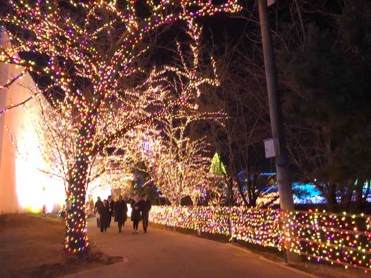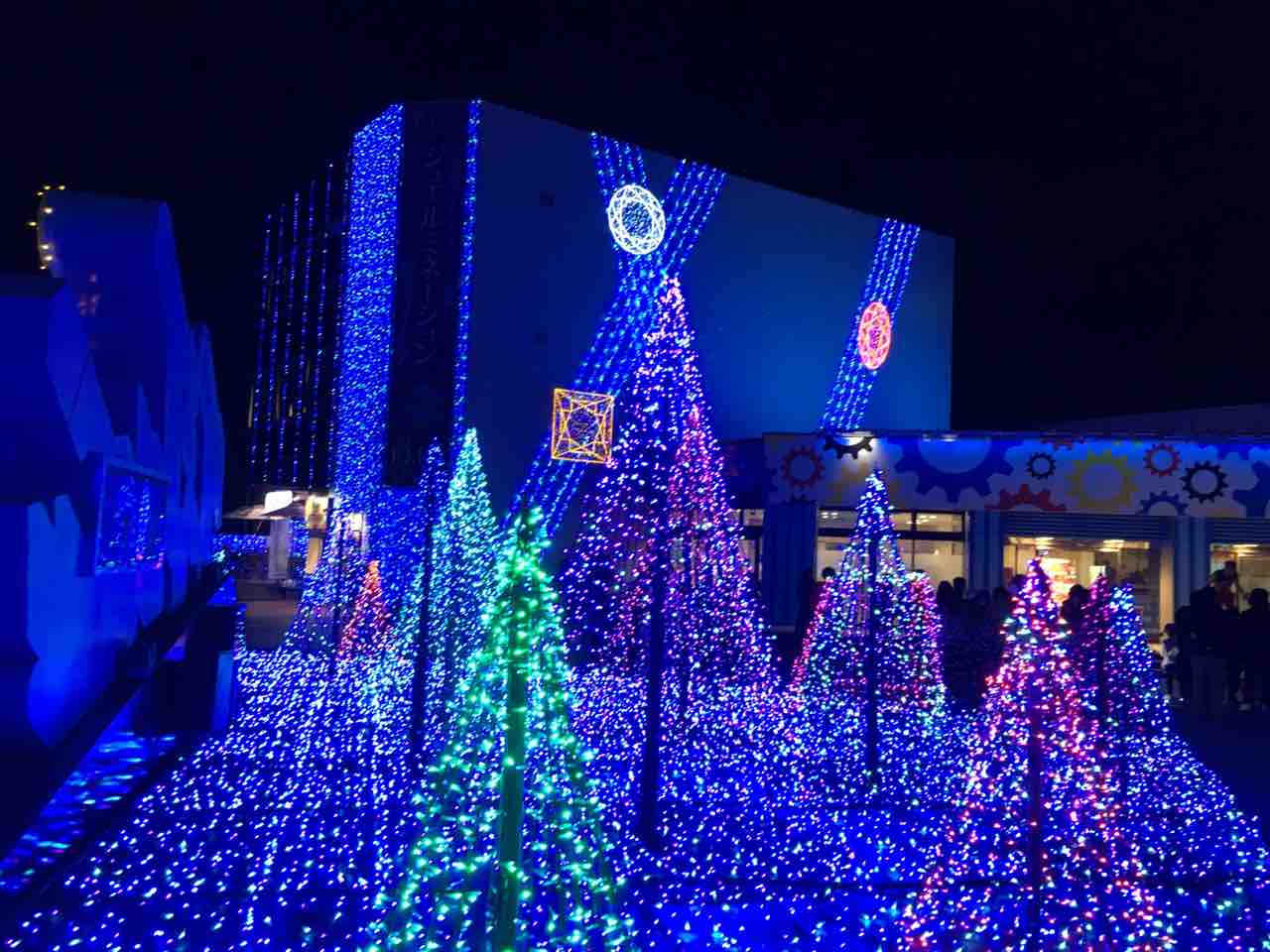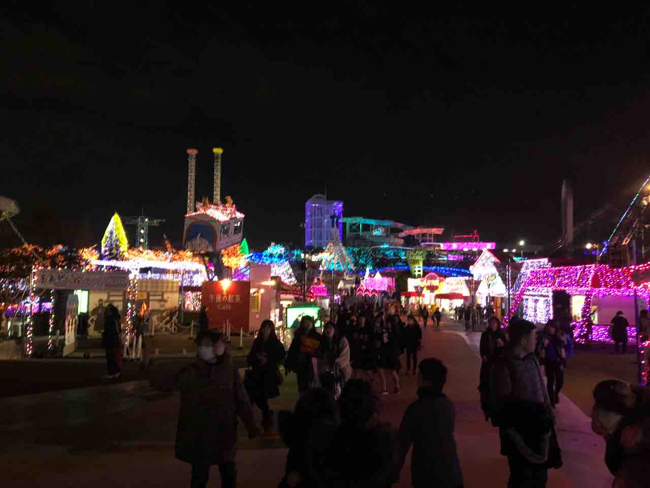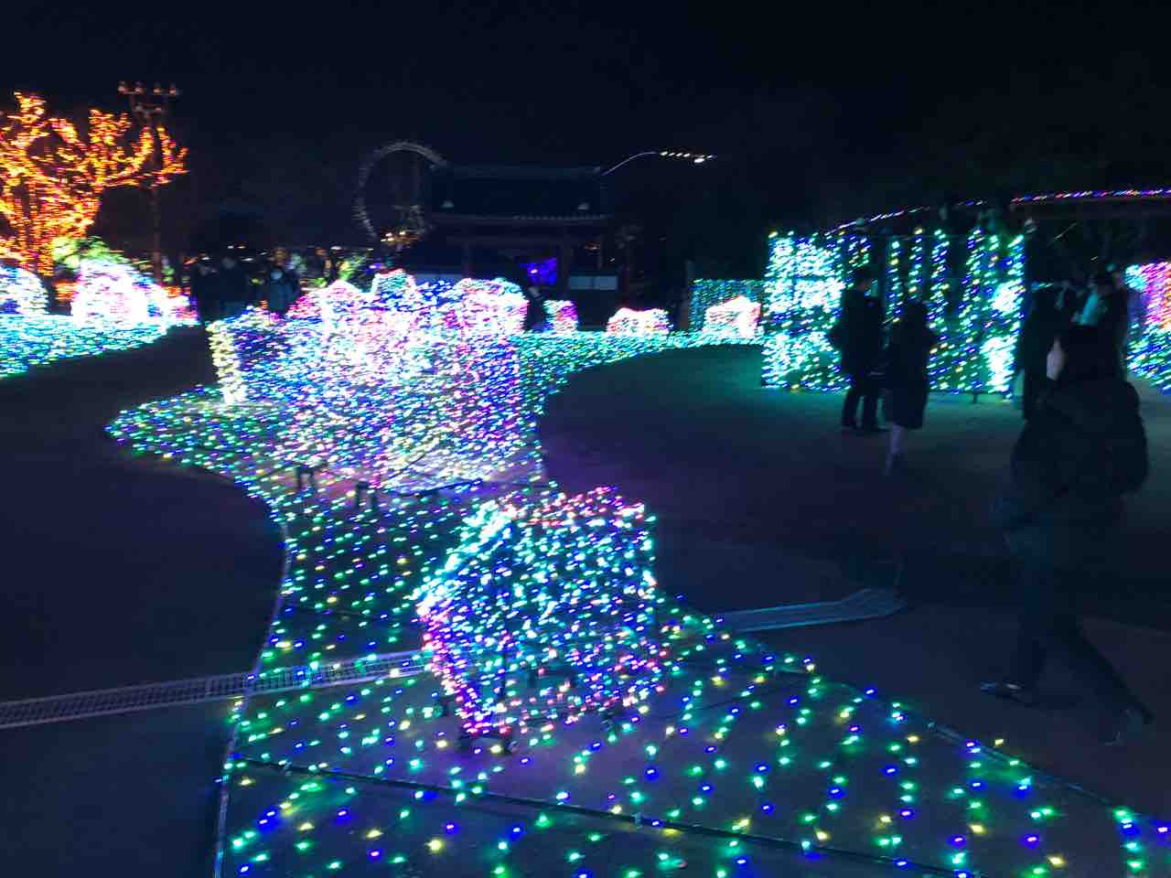 夜になると園内がイルミネーションでとても綺麗。
