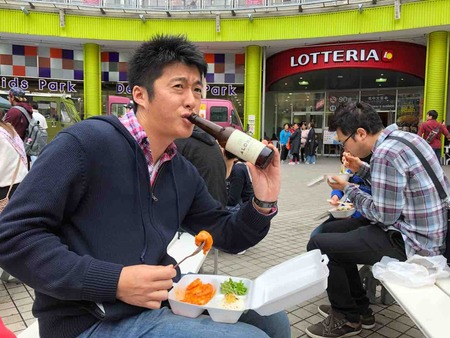 ちょうど雨が止んだタイミングで外で食べることができました。