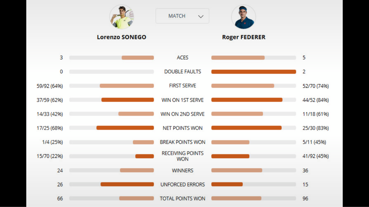 実力差がありましたが、ソネゴも3rdsetは硬さも抜けて、かなり良くなりました。フェデラーは3rdsetなかなかブレイクできなかったですが、動じることなく4-4からバックハンドウィナーでブレイクするあたりはさすがでしたね。