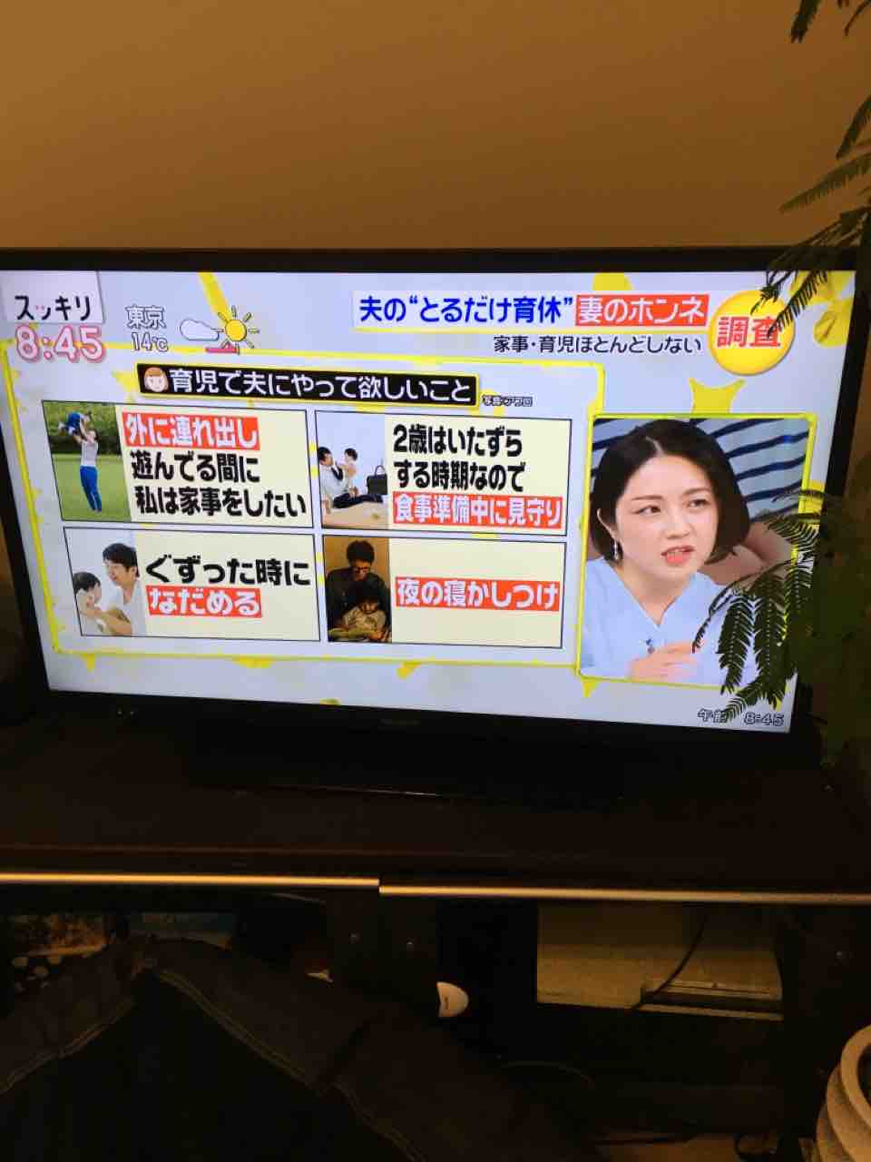ちょうどテレビで夫の育休をやっていました。