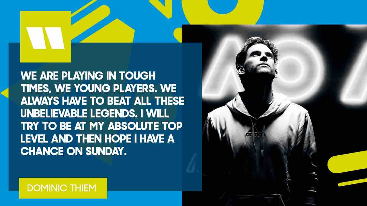 "私たち若い世代はタフな時代にプレーしている。私たちはいつも信じられない伝説のプレーヤーすべてに勝たなければならない。私のできる限りすべてをTOPレベルにできれば、その時希望ができる、決勝戦の日曜日、私にはチャンスがある"