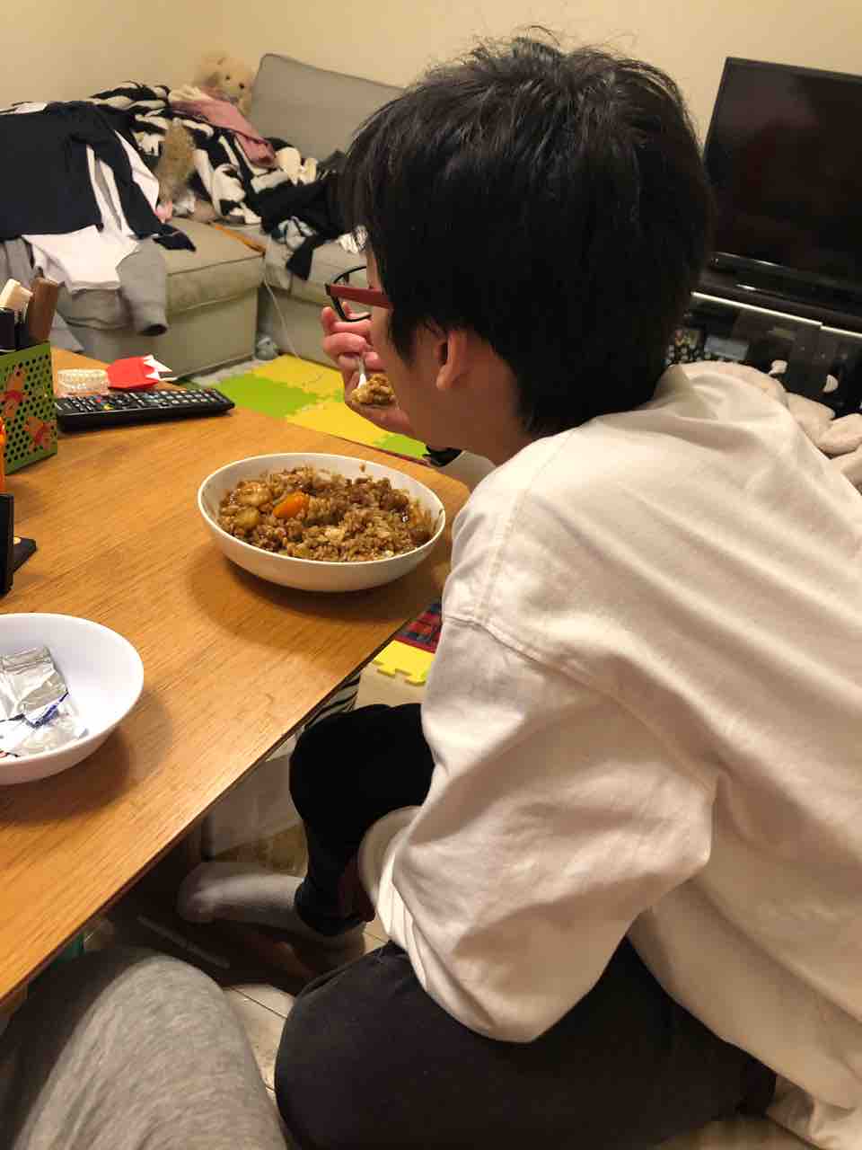 まずは昨日都立高の願書を提出し、塾から帰ってきたユウダイが食べる。