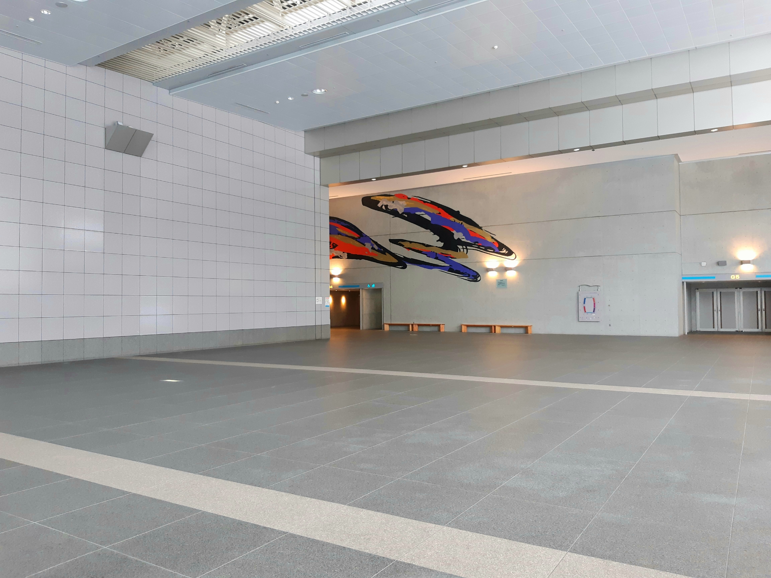 ↑例年ならブースやイベントの会場として観客で溢れる、メインアリーナ前のホワイエ。来年こそここに活気とともに沢山の笑顔が帰ってくることを願いたいです。
