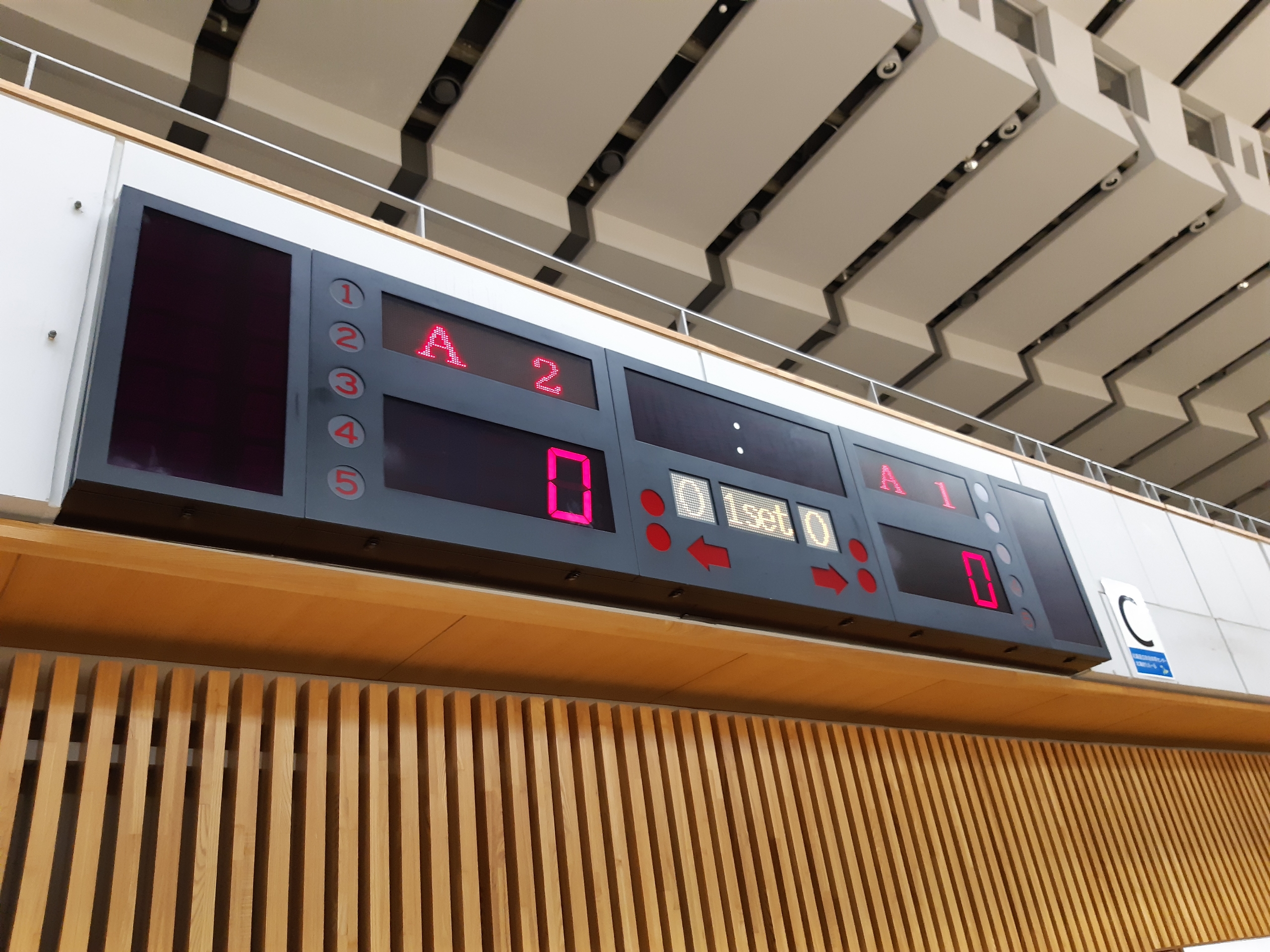 北海きたえーるには各コート、しかも両側に電光掲示板が設置されていて、
