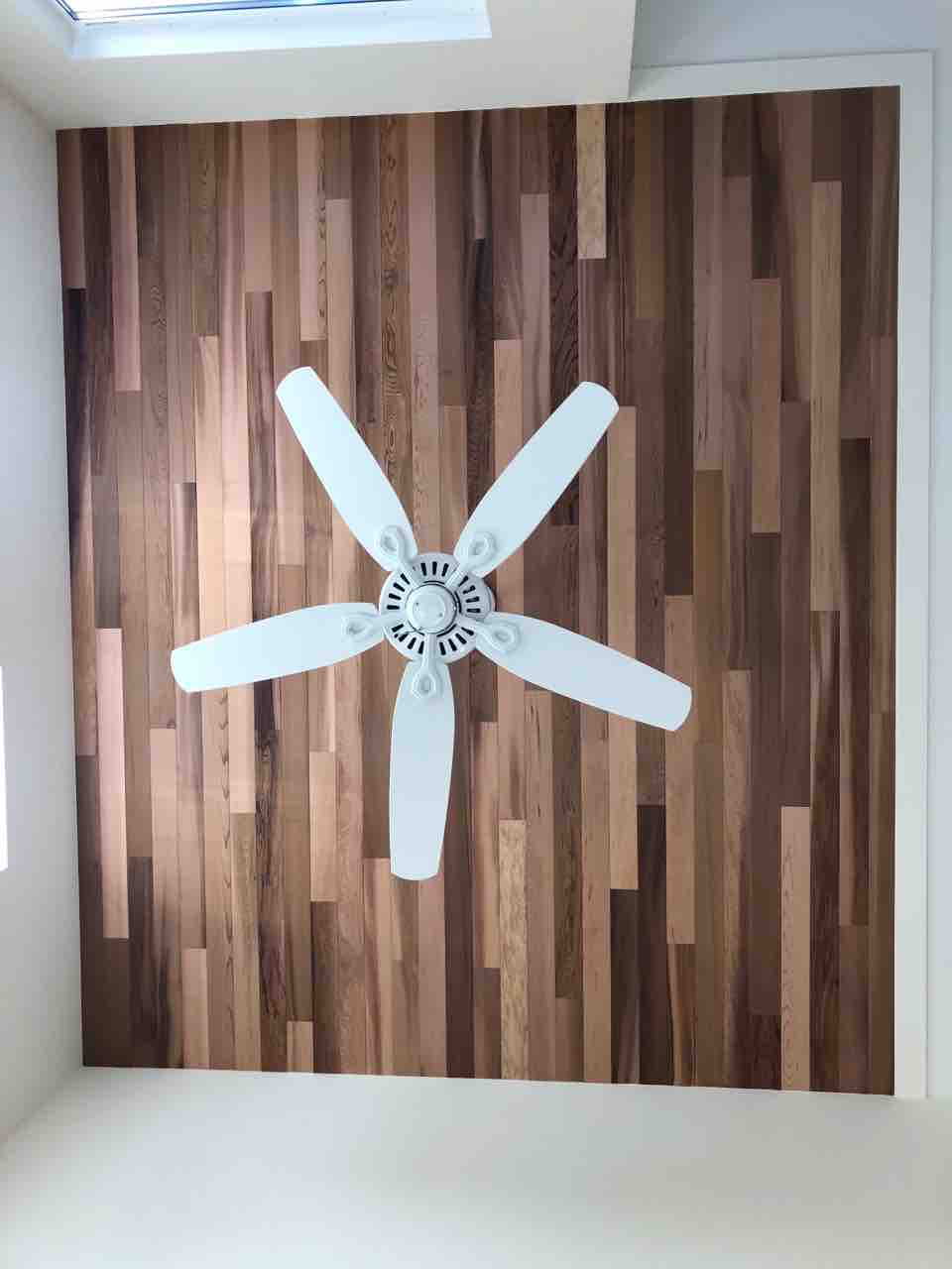 レッドシダーの板張りに、ハンターのシーリングファン。