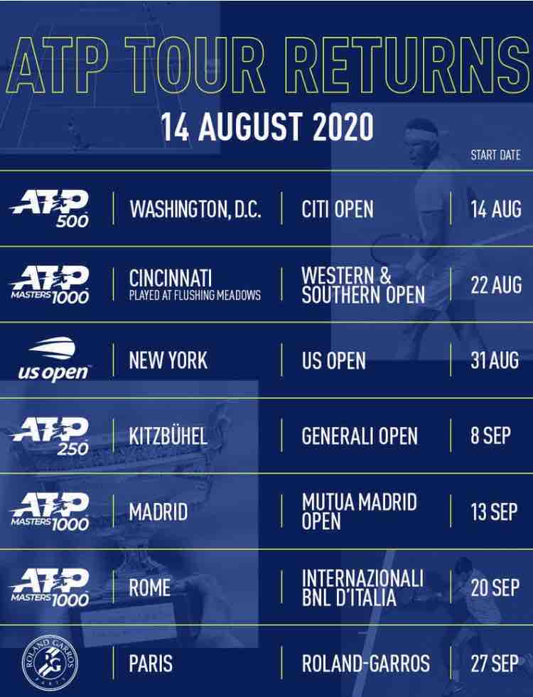 ATPは8月14日にシティ・オープン(アメリカ/ワシントンDC、ハード、ATP500 )から再開予定となり、ランキングシステムを一時的に変更し、ポイントを反映させる期間として、2019年3月から2020年12月までの22カ月間としました。選手の環境や遠征参加への姿勢にばらつきがある中、ATPは柔軟性と公平性に触れ「健康や安全のためプレーできないか、したくない選手に安定をもたらす」と説明しました。 発表されたランキングシステムは以下の通り ・選手のランキングポイントは、同期間でプレーした18大会の最高戦績を反映させる ・最高戦績の18大会がかぶってしまった場合、より勝ち上がった方がカウントされる 例:2019年5月のムチュア・マドリッド・オープン男子(スペイン/ マドリッド、レッドクレー)と2020年9月開催予定の同大会両方に出場した場合、いい戦績のポイントが授与される ・2020年シーズンの大会に出場して得たポイントは従来通り52週間保持、または2021年シーズンに同大会が開催されるまで継続となる また11月に行われるNitto ATPファイナルズの出場資格は、2020年シーズンで獲得したポイントのみがカウントされる