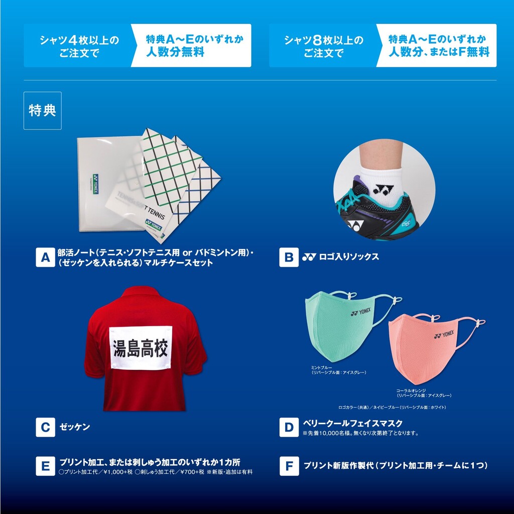 チームウェアキャンペーンパンフレット掲載商品の中から注文すると