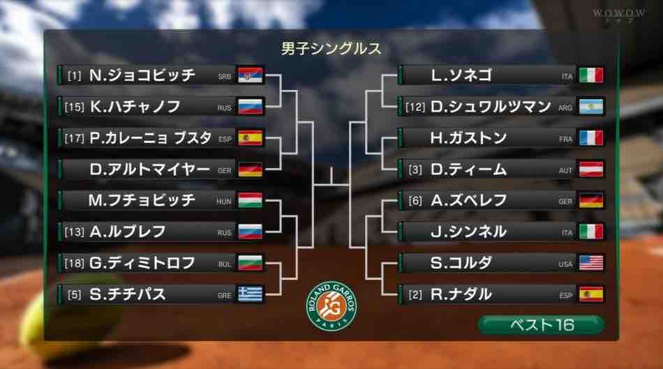 全仏オープンですが、ベスト16が出揃いました。波乱の展開になってますね⁉️