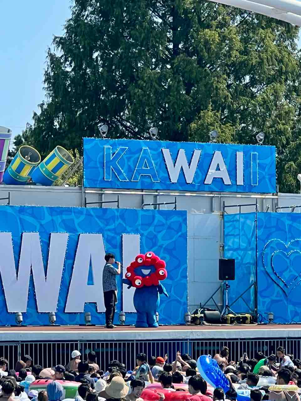 よみうりランドのプールに行ったのですが、ミャクミャクが登場しました。